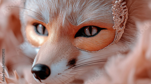 Obraz premium Italian Brainrot, surreal 3D fox in Venetian carnival mask during Venice...