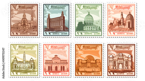 © Zoni, Fototapeta premium Italian Cities Map Postal Stamps Cartoon Vector Illustration for Design Projects