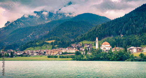 © Andrew Mayovskyy, Fototapeta premium Italian dolomites mountain lake Santa Caterina