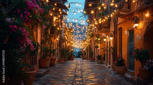 Fototapeta premium Italian Evening Street with Fairy Lights