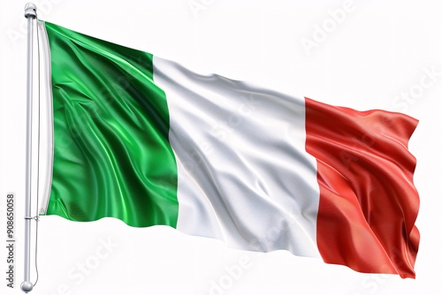 © ckybe, Obraz premium Italian flag fluttering on blank backdrop.