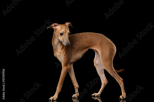 Obraz premium Italian Greyhound Dog Standing on Mirror, Posing Profile isolated Black