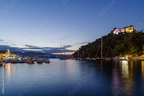 © Dmytro Surkov, Naklejka premium Italian Riviera, Tigullio gulf at sunrise light