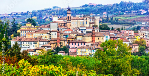 © Freesurf, Fototapeta premium Italian scenic medieval village(borgo) and castle - Costiglione d'Asti in Piedmont (Piemonte),famous region for wine making. Italy.