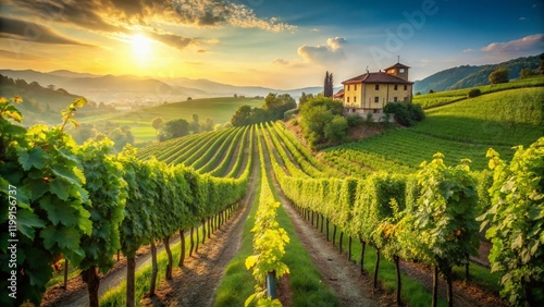 © kittipon, Fototapeta premium Italian Vineyard Rows, Winery View, Grape Plantation