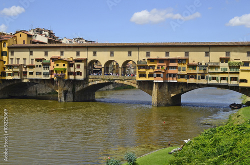 Obraz premium Italy, Florence, Unesco World Heritage site bridge Ponte Vecchio over river Arno