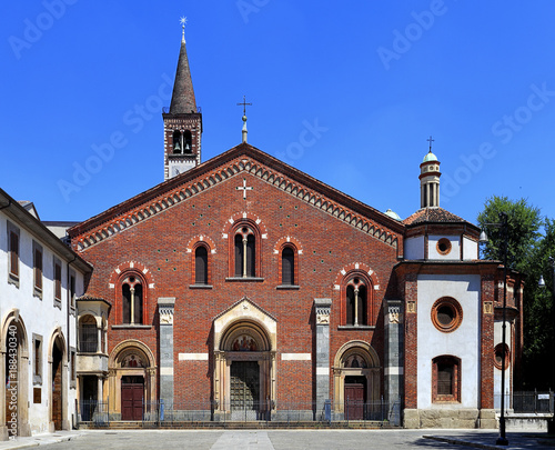 Obraz premium Italy, Lombardy, Milan - 2012/07/08: Italy - Lombardy - Milan - Basilica of Sant’Eustorgio by the Piazza Sant’Eustorgio square