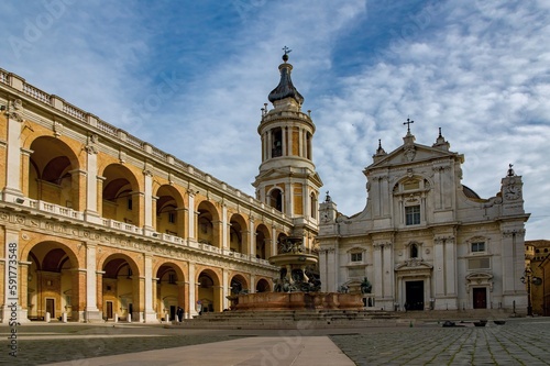 Fototapeta premium Italy, Loreto, Sanctuary of Santa Casa, view of the Basilica and the Apostolic Palace. Get to know the beauty and history of Italian cities