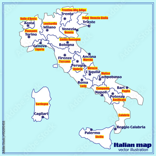 © innabelavi, Obraz premium Italy map with Italian regions. Vector.