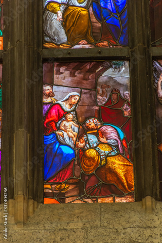 Fototapeta premium Italy, Milan, February 12, 2020, view of stained glass windows in the...