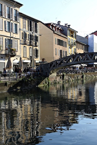 Fototapeta premium Italy, Milan: Foreshortening of the bridge on the Naviglio.
