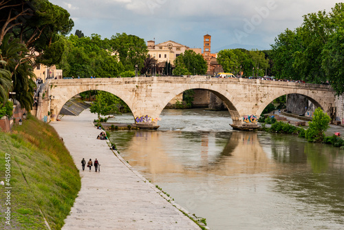 Fototapeta premium Italy, Rome. Tiber River, Ponte Potto, seen from Ponte Garibaldi.