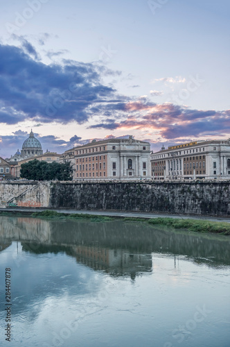 Obraz premium Italy, Rome, Tiber River with St. Peter's Basilica in the Background