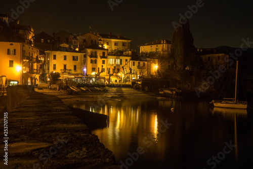 Naklejka premium Italy, Varenna, Lake Como, a view of a city at night
