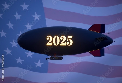 Fototapeta premium its side background 2025 American blimp flag illuminated