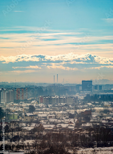 © onyx124, Obraz premium Ivano-Frankivsk city in haze on a winter day