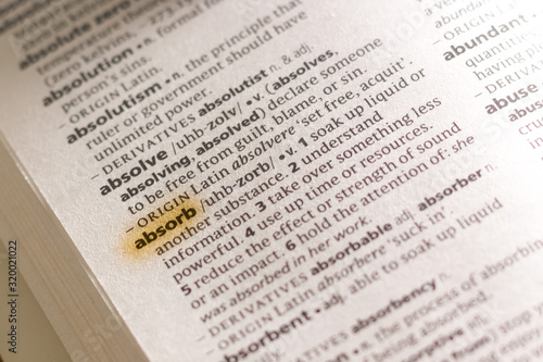 © sharafmaksumov, Obraz premium Ivanovsk, Russia - November 19, 2018: The word or phrase Absorb in a dictionary.