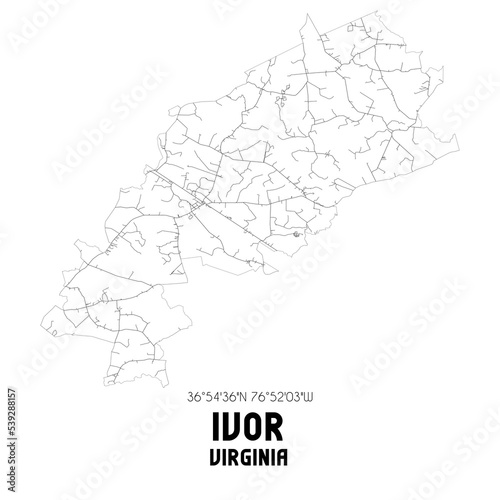 Obraz premium Ivor Virginia. US street map with black and white lines.