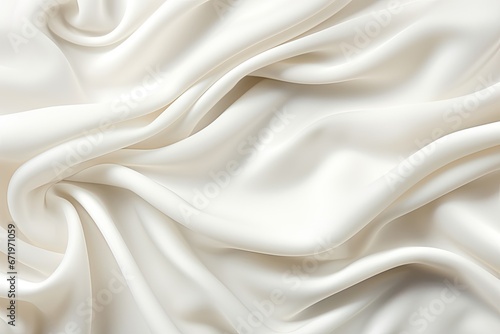 © Michael, Naklejka premium Ivory Waves: Soft and Abstract White Cloth Background with Beautiful Waves