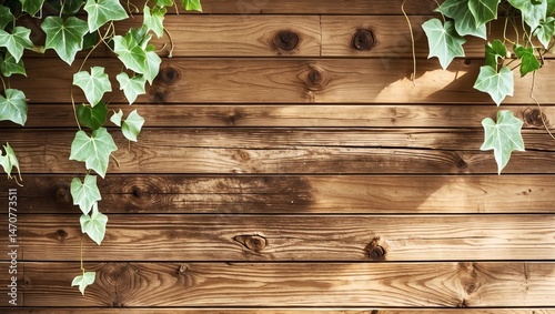 Fototapeta premium Ivy and brown wood floor frame