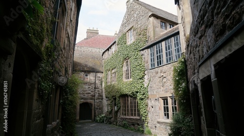 Fototapeta premium Ivy Climbing Walls of Historic Stone Buildings