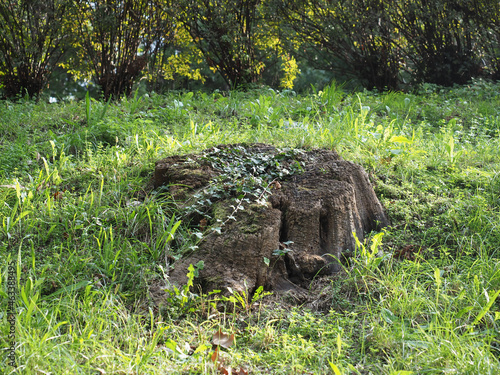 © Claudio Divizia, Obraz premium ivy covered tree stump