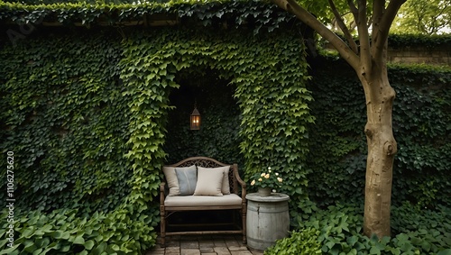 Fototapeta premium Ivy-covered wall as a natural botanical backdrop.