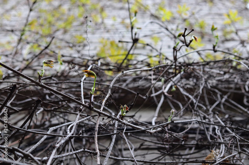© Alesia Fes, Obraz premium ivy-covered wall in spring