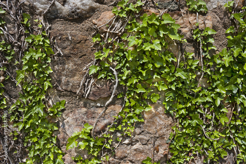 © cindygoff, Obraz premium Ivy on rough stone wall textured background