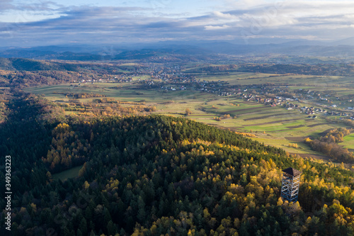 © Chawran, Fototapeta premium Iwkowa village country in Brzesko Poland. Polish mountains and hills aerial drone photo