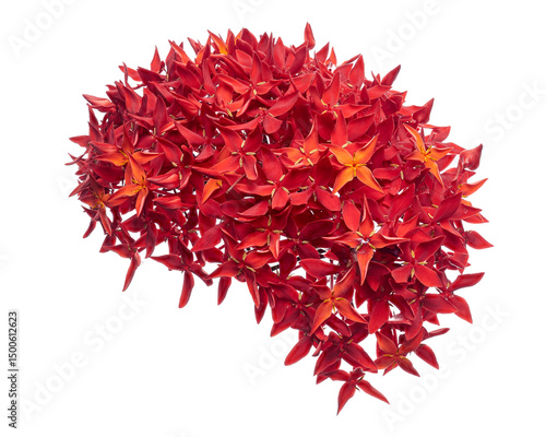 © DEWINs, Naklejka premium Ixora coccinea flower, Red ixora with leaves isolated on white background, with clipping path