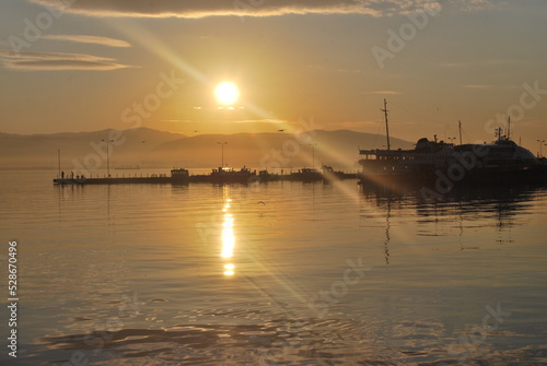 Naklejka premium Izmit, Kocaeli, Turkey; 12 December 2011, Sunset in izmit marina.