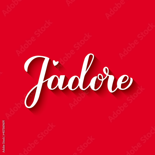 Naklejka premium J adore calligraphy hand lettering on red background. I adore inscription in...