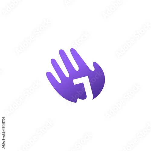 © gaga vastard, Fototapeta premium j letter hand palm hello logo vector icon illustration