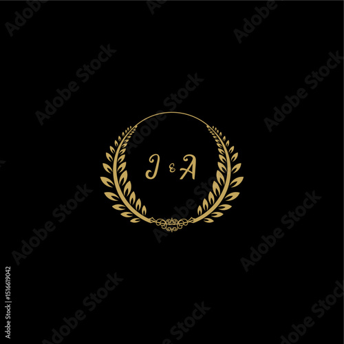 © desi, Naklejka premium JA beautiful, feminine and elegant wedding monogram initial logo with circle floral gold