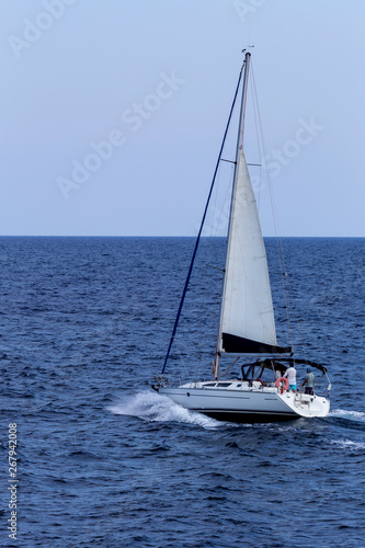 © TETYANA, Naklejka premium Jacht pływa po otwartym morzu