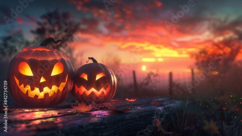 © Rafiqul, Fototapeta premium Jack-o'-Lantern on a Wooden Path Under the Moonlight