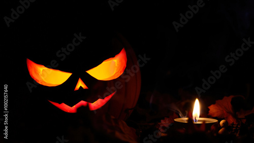 Fototapeta premium Jack-o'-lantern with a spooky glow