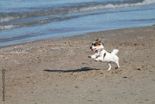 © Jacek, Fototapeta premium Jack Russell terrier playing on the beach