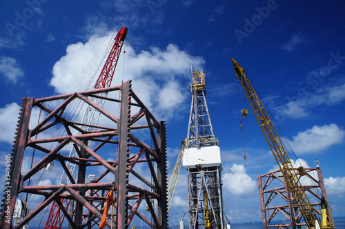© bomboman, Obraz premium Jack Up Offshore Drilling Rig With Rig Cranes on Sunny Day in Th
