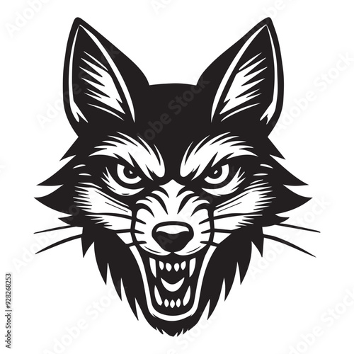 © Shineoxstock, Fototapeta premium Jackal Face Outline Design, Jackal Head Clipart, Cute Jackal illustration in black and white