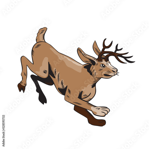 © Redwater Vectors, Obraz premium Jacklope Jumping Side Etching