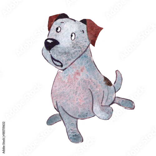 © Ekaterina, Obraz premium JackRussel terrier dog puppy hand drawing watercolor