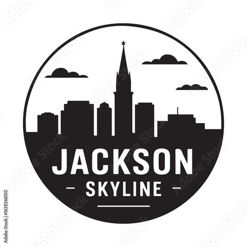 Obraz premium Jackson skyline. Circular style. Stock vector illustration. Vector black silhouette. with white background.