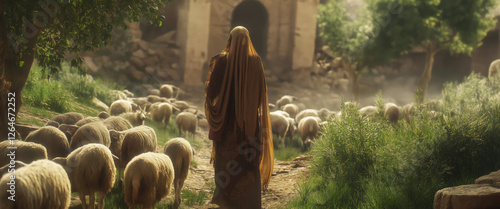 © Daniel, Fototapeta premium Jacob meets a peasant girl standing by a well