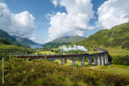 © Roelof, Fototapeta premium Jacobite steam train (a.k.a. Hogwarts Express) passes Glenfinnan viaduct
