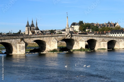 Fototapeta premium Jacques Gabriel bridge, Blois, Loire, chapel, St Nicholas Cathedral, river,