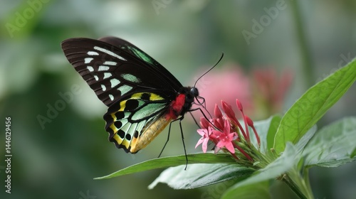 © riverdhan, Obraz premium Jade-Green Birdwing Butterfly on Pink Ixora Flower