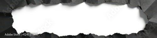 Obraz premium Jagged, blackened paper perimeter; pure white backdrop, rustic, object, material