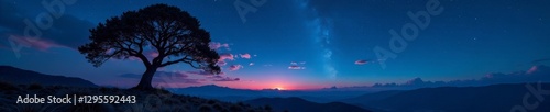 Fototapeta premium Jagged branches of lone tree, night sky backdrop, night, moon